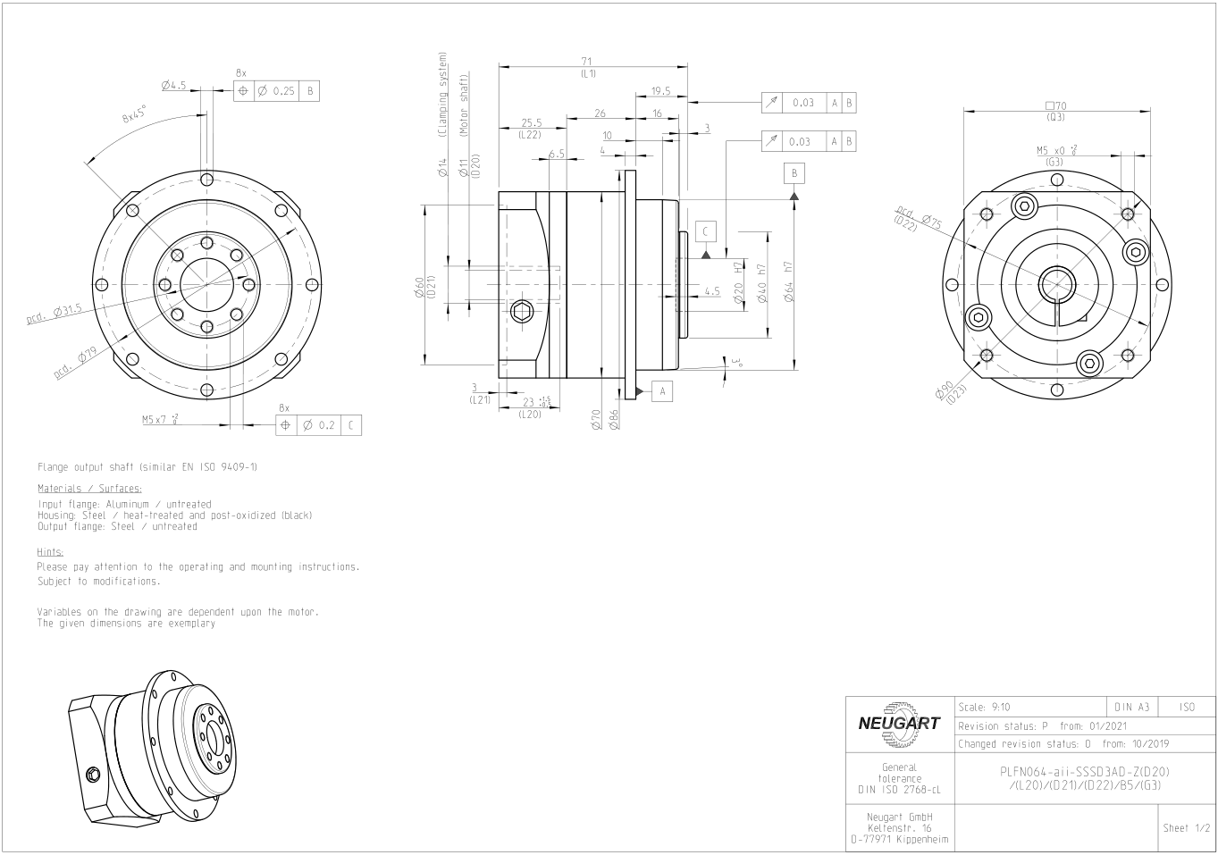 PLFN selection gearbox size structure diagram:PLFN64 gearbox structure and dimension drawing